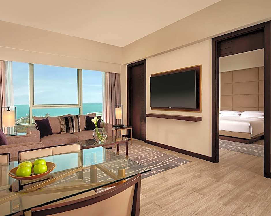 This 39 sqm room overlooks the city or the Arabian Sea and features a smart work area and a modern marble bathroom with a hairdryer, bath toiletries, and robes and slippers. A 65-inch smart flat-screen HDTV, coffeemaker, and small refrigerator are provided, as are ironing facilities and heating and air conditioning.